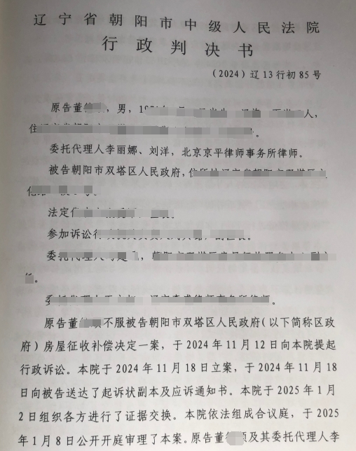原告董某某在雙塔區(qū)凌鳳街道八寶村有繼承的兩處有證房屋。2022年11月25日,區(qū)政府發(fā)布征收土地啟動(dòng)公告,其房屋在征收